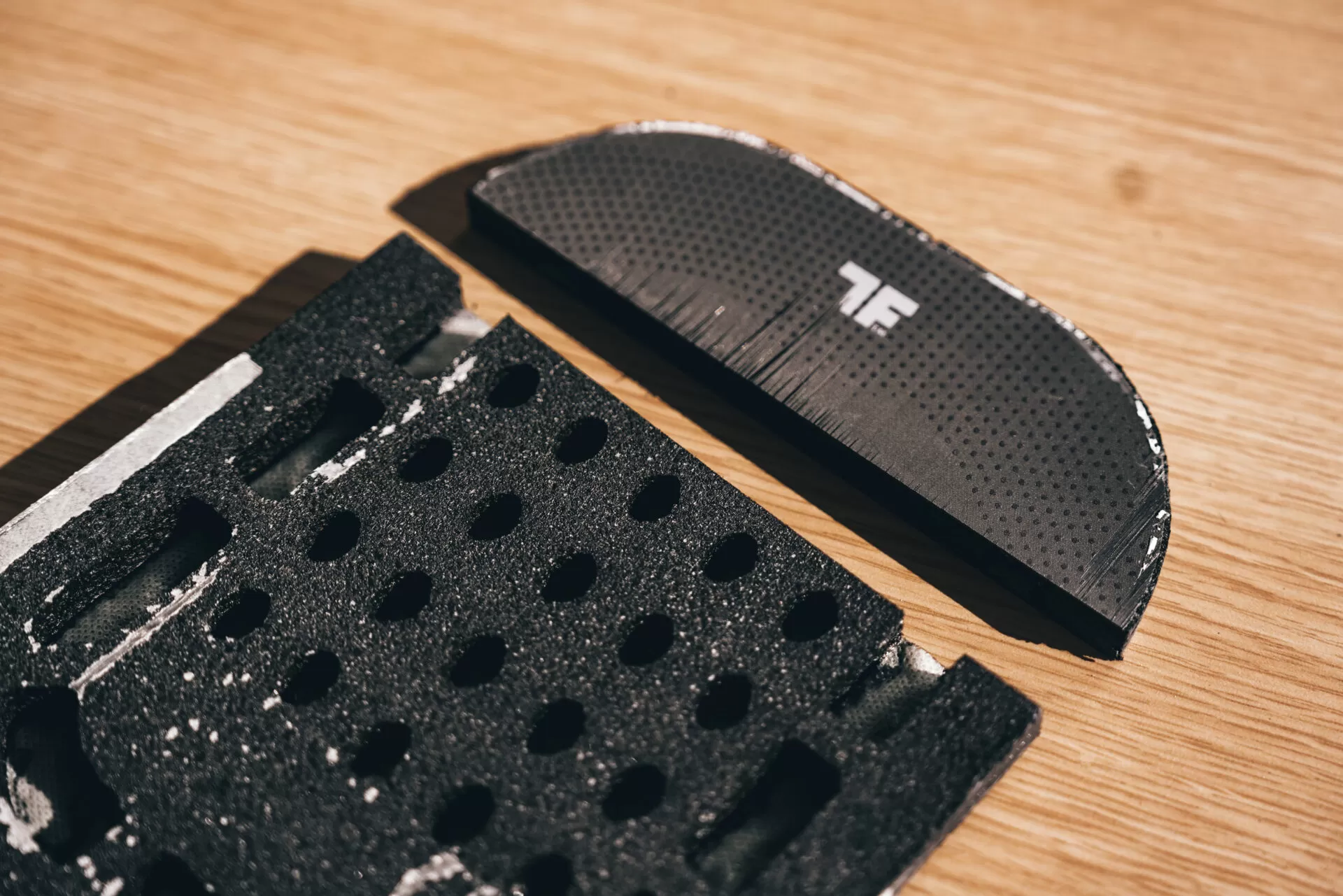 The TruFoam paddles start with a blank foam panel and then have a design cut out of them to create voids in the core. These voids are a big part of what creates the performance characteristics of the paddle. Changing up the void design can result in more power, control, pop, etc. You can also change up the type of foam you use and how dense it is to manipulate performance. The performance possibilities are endless where polymer had a limit on what you could create with it.