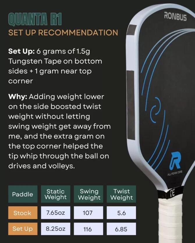 The Ronbus Quanta series needs weight to play well. Here are my recommended setups for their three best shapes.