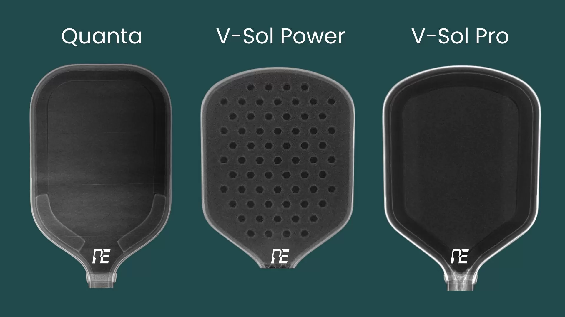 The V-Sol Power is also a power paddle, but it feels softer and more muted at impact. It doesn’t rebound as quickly as the Pro or Quanta, which gives you a split second more dwell time on dinks and resets. Its top-end power ceiling is higher than the other models, though, but you need some swing speed to reach it. Making it more rewarding for players who can already generate their own offense. It’s more of an on-demand type of power rather than instant power.